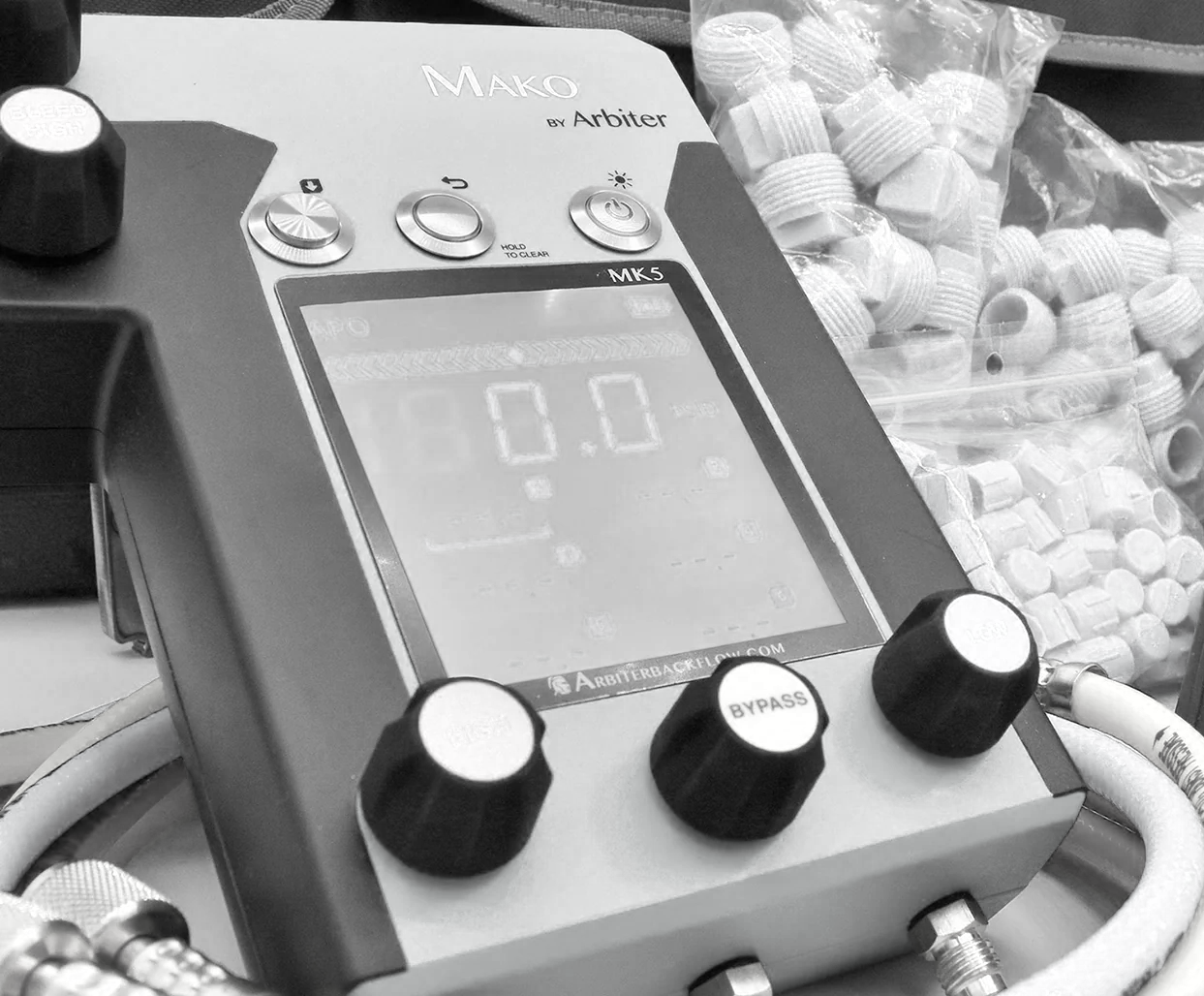 Calibration of backflow test kits to ensure they are operating within specification. By comparing one device to another with a known correctness, backflow test kit calibration ensures that the device you rely on for testing and measuring backflow prevention valves is operating correctly.